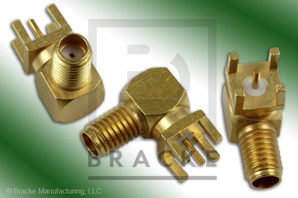 SSMA Female Right Angle P.C. Mount Connector .034″ Round Contact