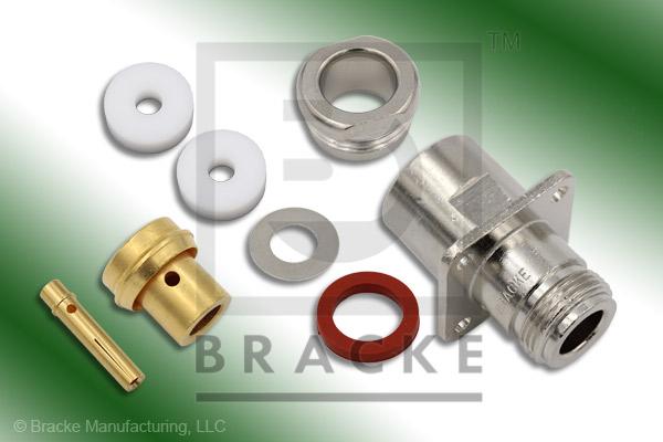 N Female 4 Hole Panel Mount Connector Solder/Clamp RG401, RG401-Alum, RG401-Flex